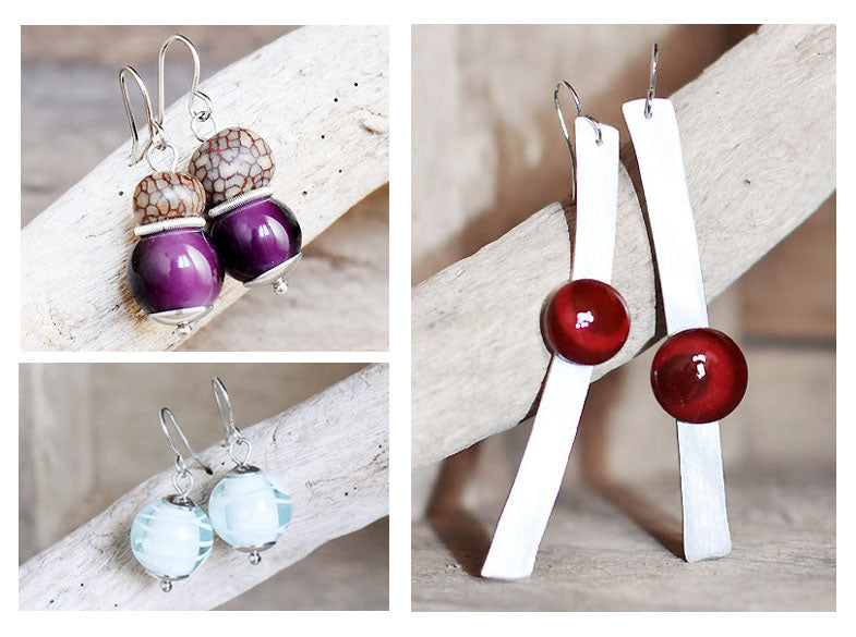 F1 collezione SPILLONI vetro soffiato e perle in stoffa rIciclata