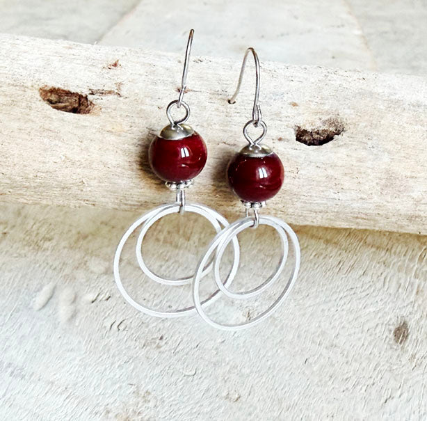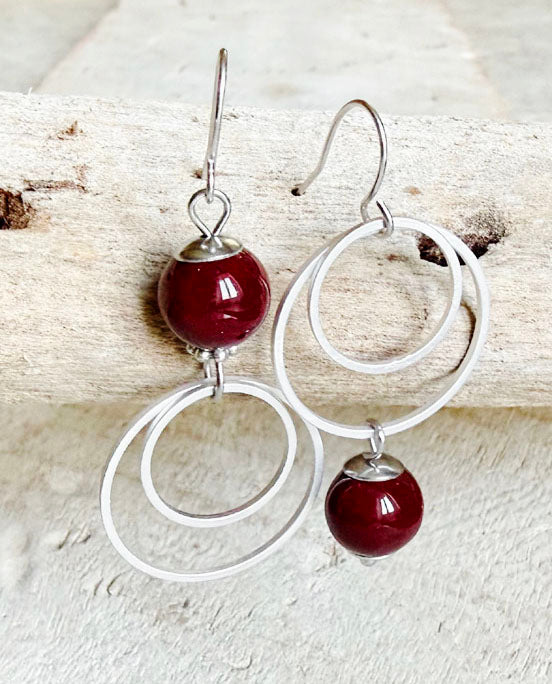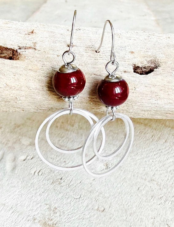 orecchini pendenti rosso scuro con cerchi MAT MOD 2