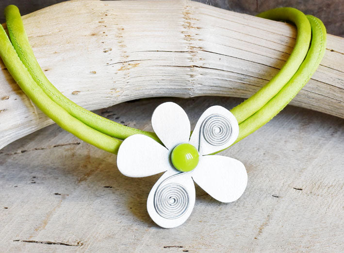 collana - spilla fiore verde lime GRANDE - 2 fili
