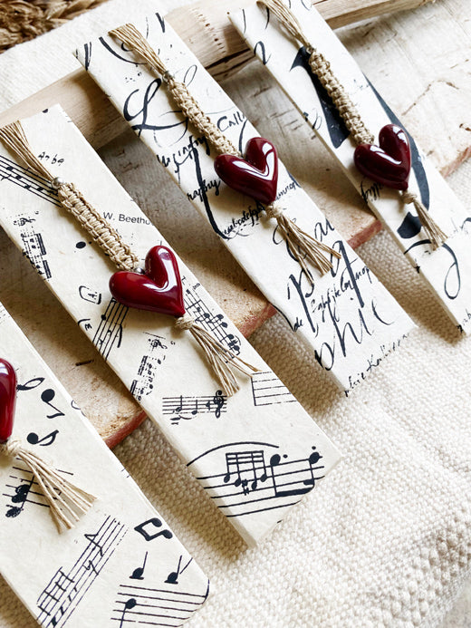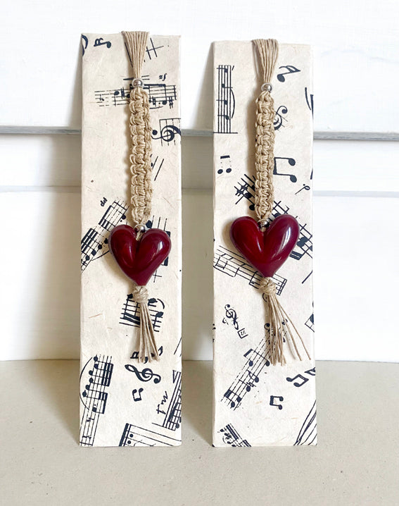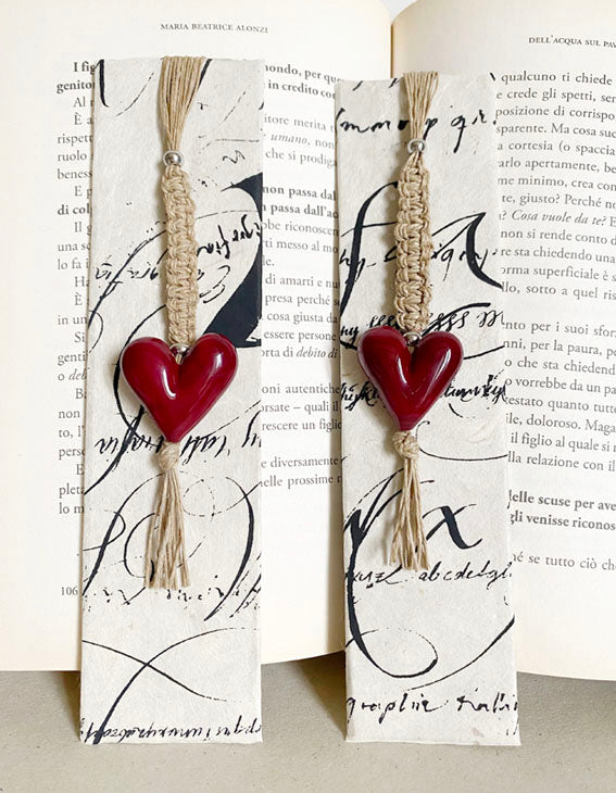 Inserto in spago lavorato a macramè con cuore in vetro di murano.